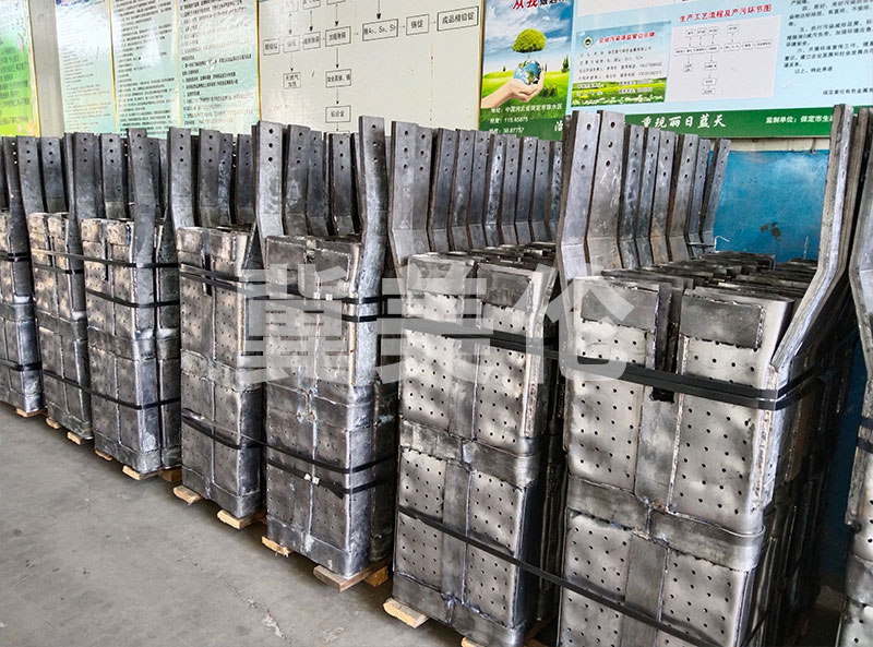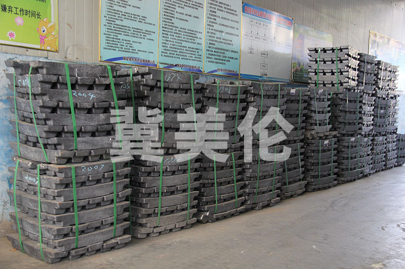 保定美倫有色金屬有限公司成立于2000年,主要生產(chǎn)鉛基合金,鉛板,鉛銻合金板,鉛陽極板,錫板,鉛銀板,鉛鈣鍶板,產(chǎn)品優(yōu)質(zhì),信譽優(yōu)良!镄抛u好。★設(shè)備先進。五臺鉛板流水線: 2.2米寬1條、1.3米寬2條、 1米寬2條。設(shè)備精良,產(chǎn)品精度高,生產(chǎn)能力大。超大功率電機,不僅使鉛板、鉛陽極板、鉛錫板的質(zhì)量大幅度提高,還可以軋制含0.5%- 15%銻的合金鉛板、鉛銀板、鉛錫合金板、鉛鈣鍶銀合金板、錫板,填補了國內(nèi)只能生產(chǎn)低梯合金鉛板的空白!镌喜少弴(yán)格把關(guān)。原料采用國標(biāo)1#電解鉛。并且有進口德國斯派克直讀光譜儀檢測確保質(zhì)量關(guān)............